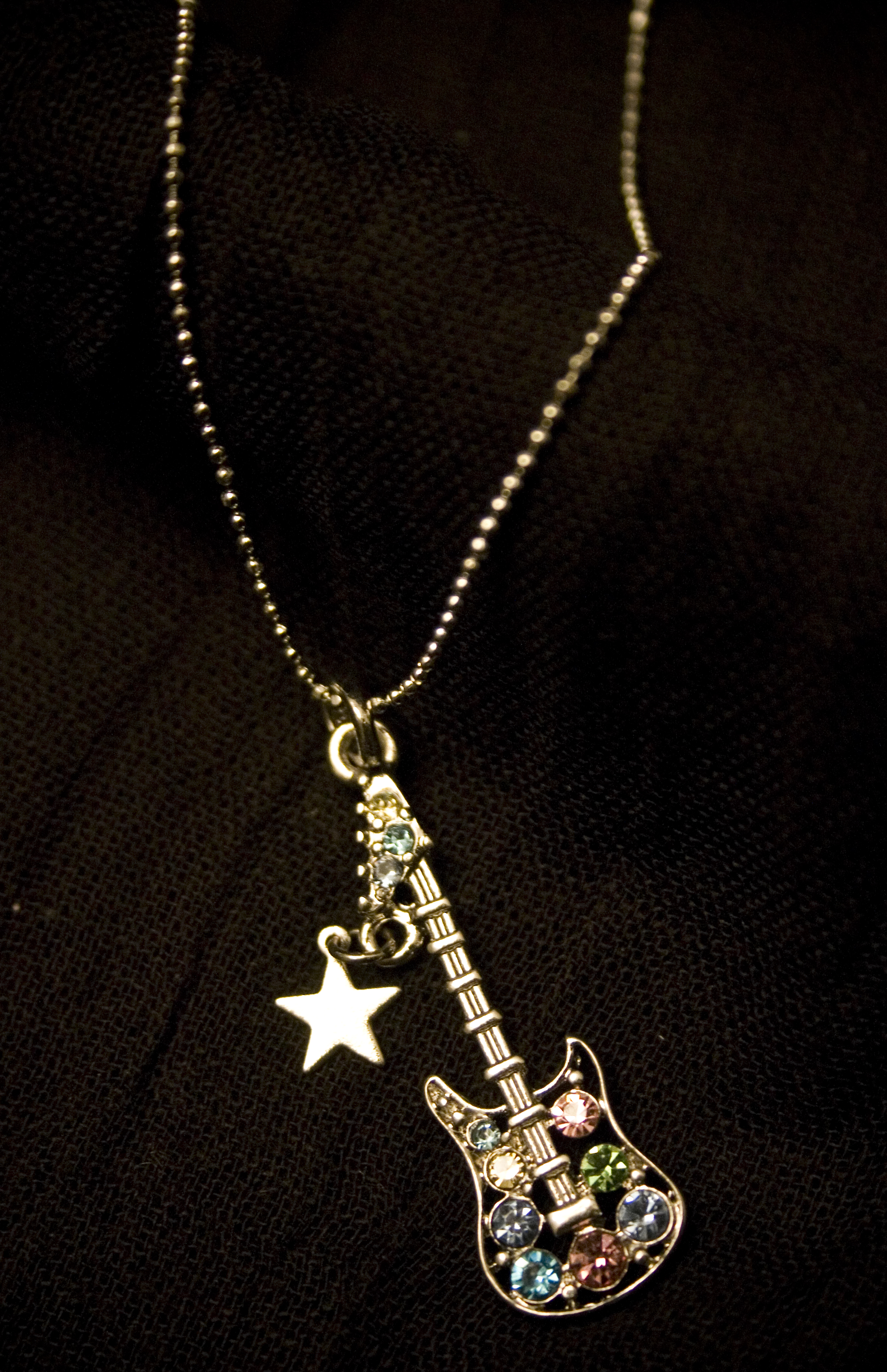 $ 25.00 USDSparkley guitar necklace with the inscription "FOREVER" on the back. Includes chain! LOVE IT! When asked why a guitar...your answer, "Because I AM A ROCKSTAR BABY" |
